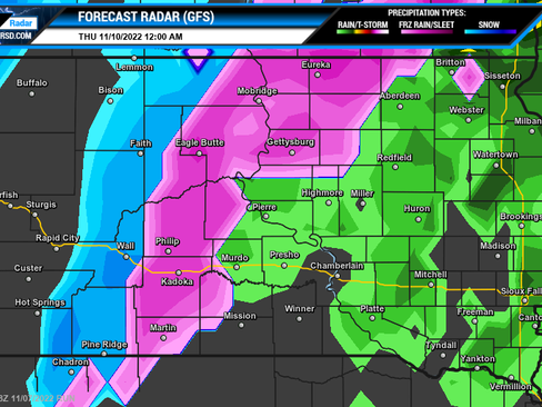 During the overnight hours on Wednesday night, precipitation is expected to become more widespread with snow in the west, a mixture of freezing rain for central, SD, and main rain for the east.
